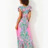Stand out at any social occasion in the Akela Dress, a strapless design in oversized botanical eyelet. This party perfect look features an interior corset, drop waist, and separate sash.