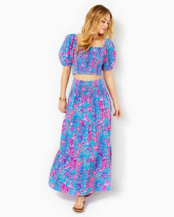 Double up on vibrant print with our Aston Maxi Set. Fashioned from lightweight cotton poplin, this two-piece set includes a smocked puff sleeve top and tiered skirt.