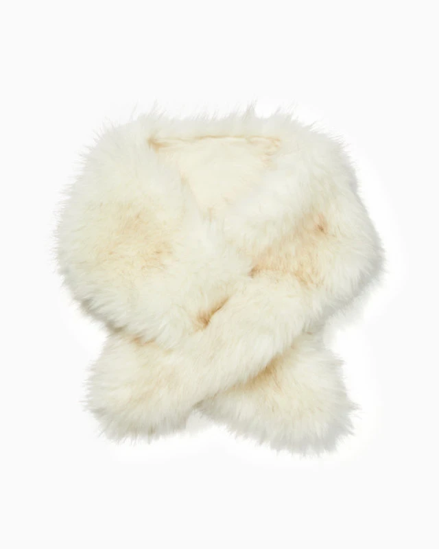 - Faux fur scarf with slit for securing.