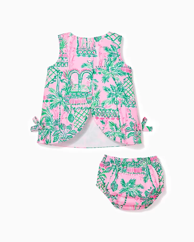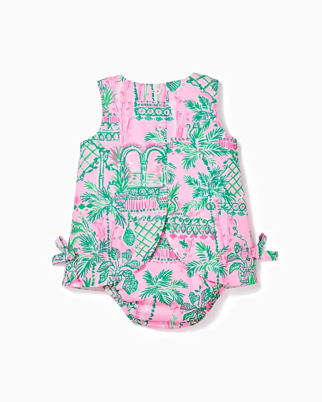 Your mini’s first Lilly shift is a special occasion, so we made sure our infant version of this classic is as pretty and vibrant as the one you wear. The iconic shift silhouette shines thanks to designer touches, including lace trim details, a button-back closure, hem bows, and matching bloomers. Best of all, you can wear the same Lilly print as your little one.