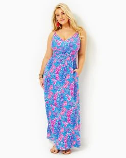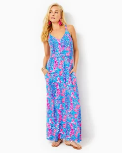 We love the Blake Maxi Dress for its timeless silhouette and super-soft jersey fabric. This ankle-length style features slender adjustable straps, a fitted bodice with interior cups, a ruched waistband, and a flowy skirt with side seam pockets.