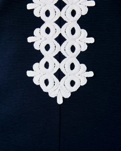 The Callista Dress is a navy sleeveless dress with lace details. It’s the perfect dress for a wedding or spring celebration. Just add your favorite accessories.