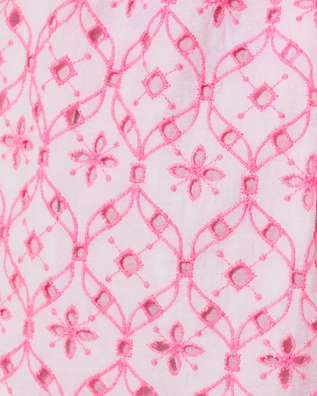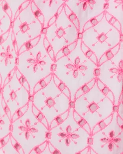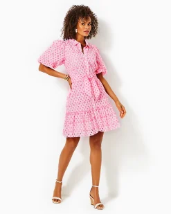 Daintily detailed eyelet fabric makes the Cartley Dress a social standout. This easy fit style pairs quintessential shirtdress details, like a button front placket and collar, with bubble hem sleeves, a tall ruffle hem, and side seam pockets.