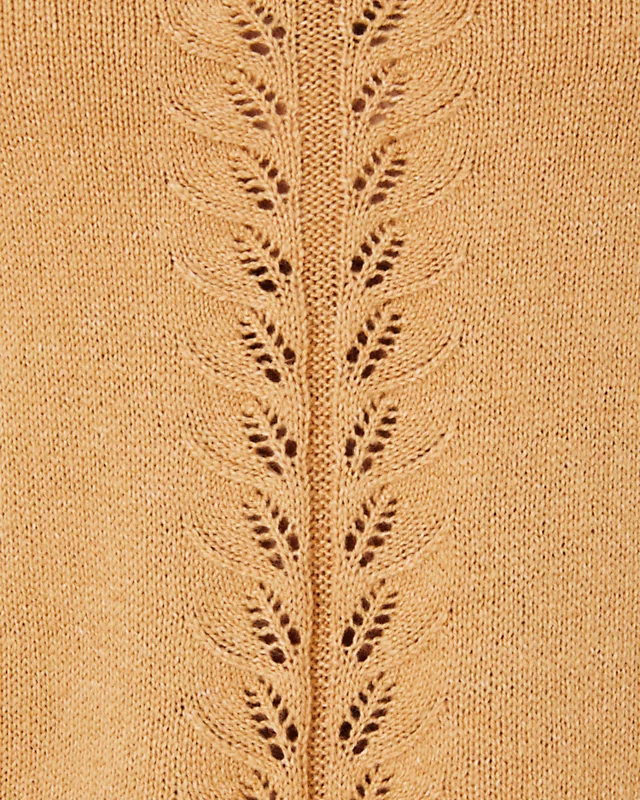 - Easy fit, raglan crewneck with an elliptical hem and pointelle stitch details at center front and sleeve.