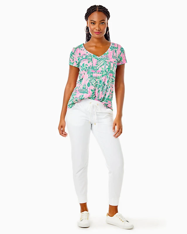 Our effortless Etta V-Neck Top is a short sleeve tee in a machine washable slub jersey. In vibrant prints, this easy fit cotton t-shirt pairs perfectly with custom color bottoms.