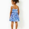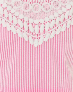 A Lilly lace neckpiece brings boho charm to the seersucker Mini Britt Dress, a swingy halter neck style with pockets tucked into the tiered skirt.