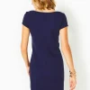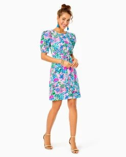 Luxe terry fabric in a intricate print makes our Harriet Dress a standout style for warm weather dressing. Pleated elbow-length sleeves and a sash at the waist add fashionable flair to this straight-fit design.