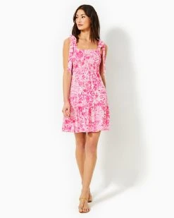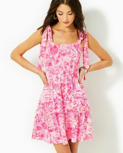 A smocked bodice and ruffled above-the-knee skirt create the fit-and-flare silhouette of our Kailua Dress. This prettily printed jersey style is topped off by functional tie straps.