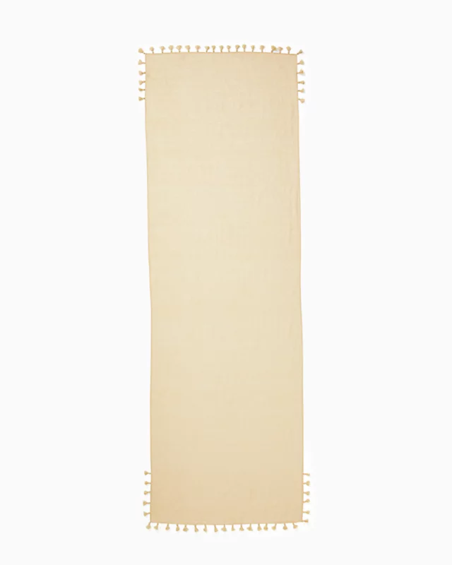 Metallic thread and a border of tiny tassels add delightful detail to the lightweight and versatile Lana Scarf.