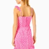 Layered flounces frame the V-neckline of our carefree Linwood Romper. Made from satin back crepe, this prettily printed style features a straight, sleeveless silhouette with side slits.