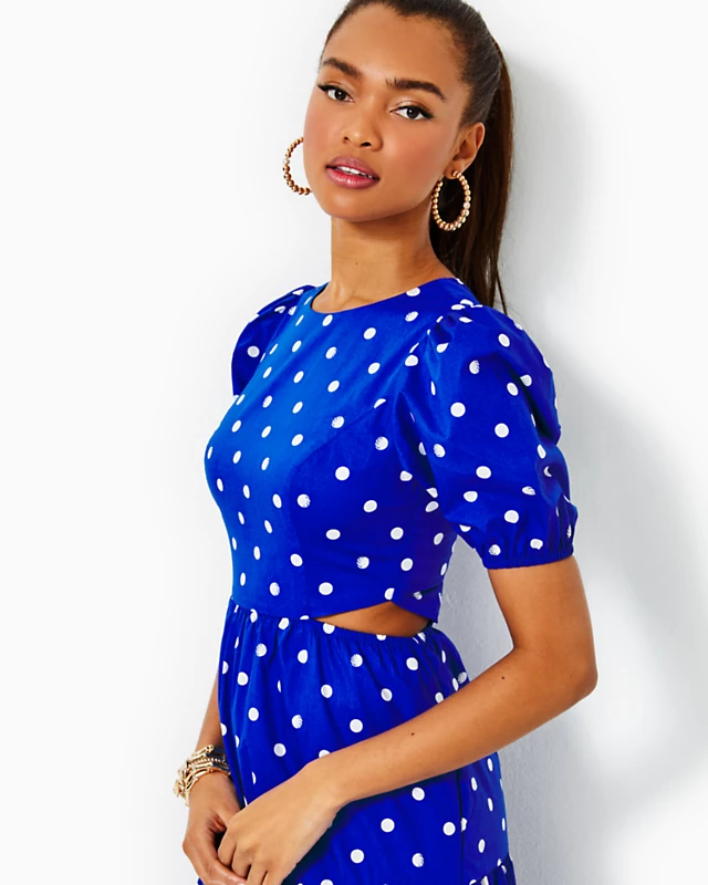 Cutout details at the waist add an unexpected wink to the Lyssa Dress, a lightweight cotton poplin midi with full sleeves and a tiered skirt. We also added one of our favorite accents: pockets!