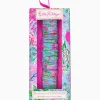 - Mini printed zip top canvas beach tote with striped webbing detail.