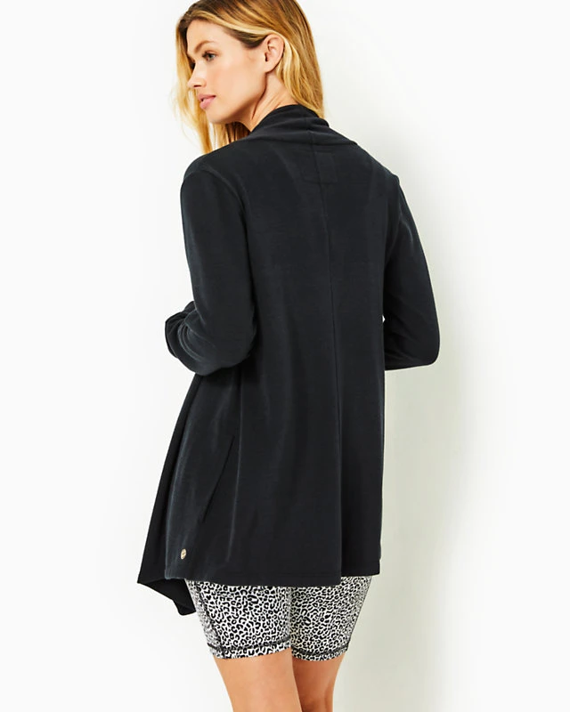 - Cozy drape front wrap with side pockets and thumb holes.