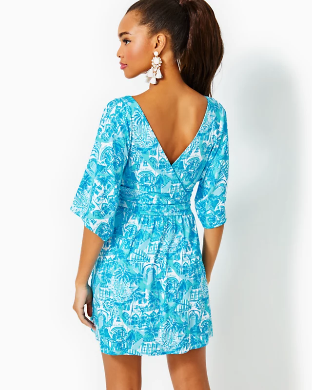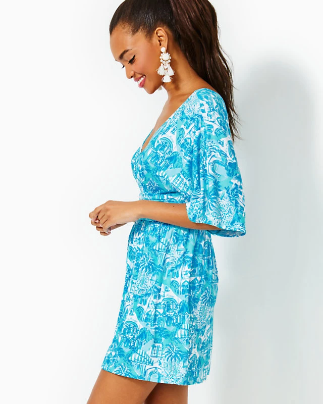 Our Parigi Skort Romper is designed for fun in the sun. Made from soft jersey, this skirted style features a surplice neckline, elbow-length kimono sleeves, and a ruched waistband.