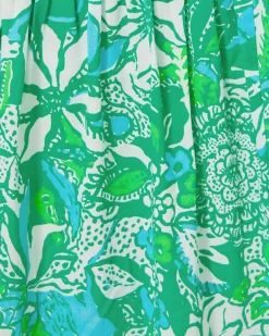 Crisp and cool in printed cotton voile, the Pollie Dress is a fit-and-flare midi with a tiered skirt. Its sleeveless silhouette is accented by side seam pockets, a smocked back panel, and charming ric rac trim.