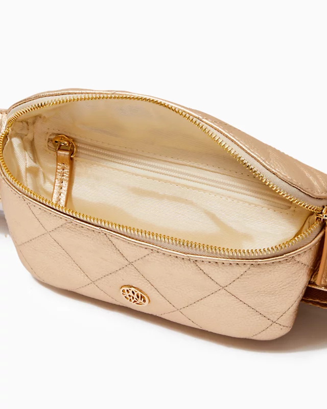 Elevate your sporty-chic belt bag with the quilted gold leather Kenton. This runaround favorite features a zip closure and buckled webbing strap.