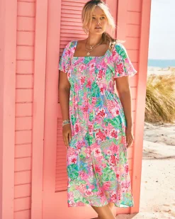 - Easy fit, midi dress with smocked bodice and short, puff sleeves.
