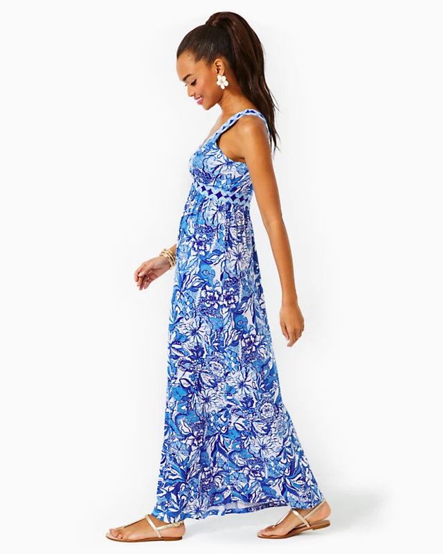 Go from day to evening in effortless style with the Serena Dress, a fit-and-flare maxi made from soft printed jersey. This flats-length design features a deep V-neckline and interior bodice cups.