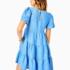 Look cool, crisp, and undeniably chic in our strappy Shelli Eyelet Mini Dress. This tailored eyelet mini is designed with bodice cups, a tie back detail, and an exposed back zipper. Lilly lace trim makes a fab finishing touch.