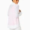The Tatum Cardigan is our favorite cardigan – it’s a longer length open cardigan in gold. This cotton cardigan with a scallop pattern features fringe at the hem. It’s perfect over any shift or even white on white.