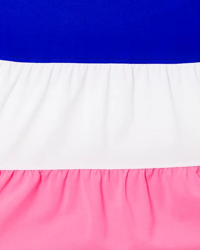 Tricolor tiers lend graphic appeal to our Peachy Skort, a Luxletic® design made from Meryl® Nylon for moisture wicking and UPF 50+ sun protection. A pocket on the undershort keeps the essentials close at hand while you’re on the move.