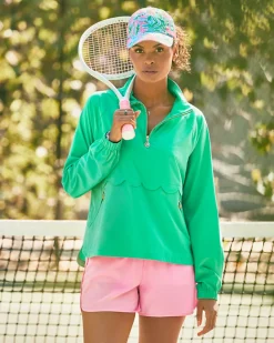 Scallop details add a touch of whimsy to our sporty Tulia Performance Jacket. Ideal for active dressing rain or shine, this water-resistant Luxletic® layer features a half-zip neckline, front zipper pockets, and UPF 50+ sun protection.